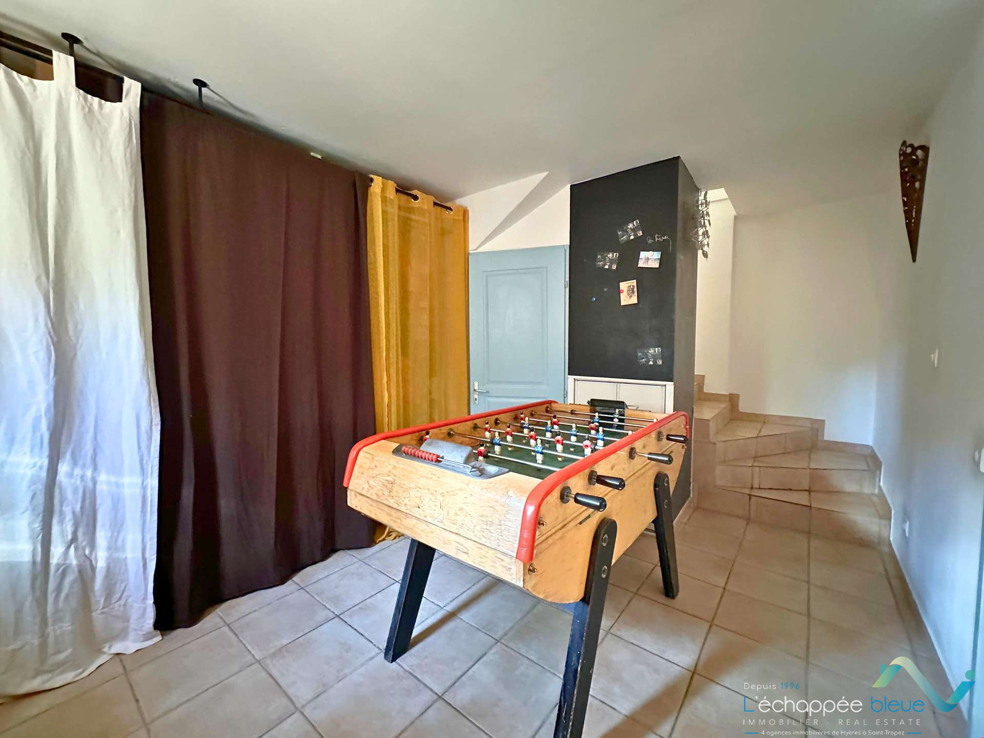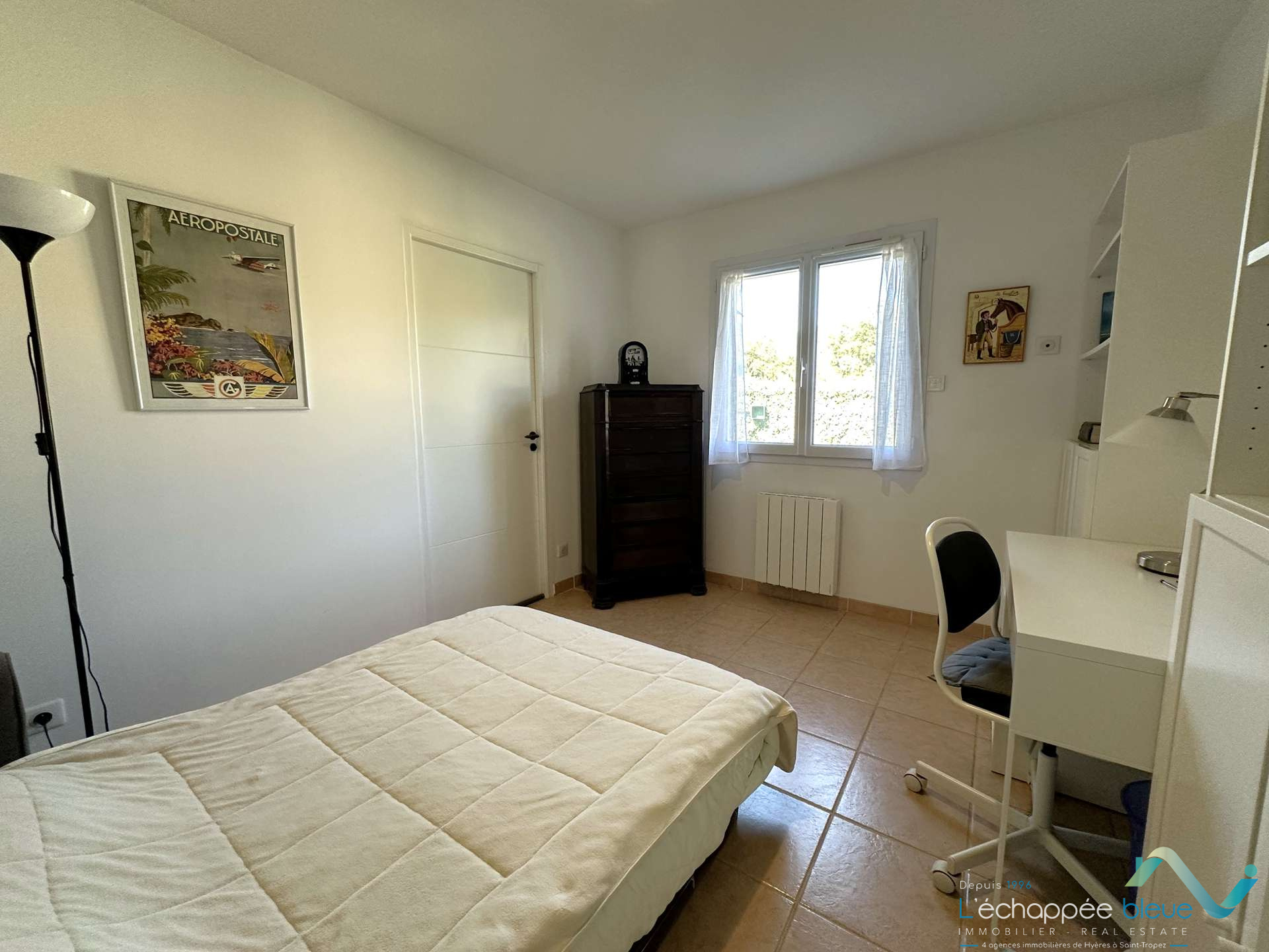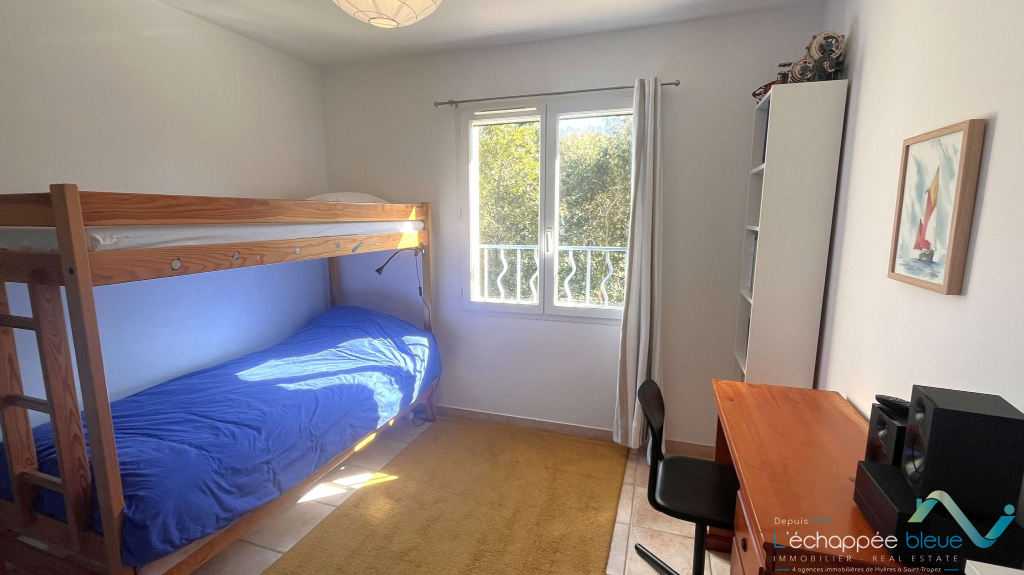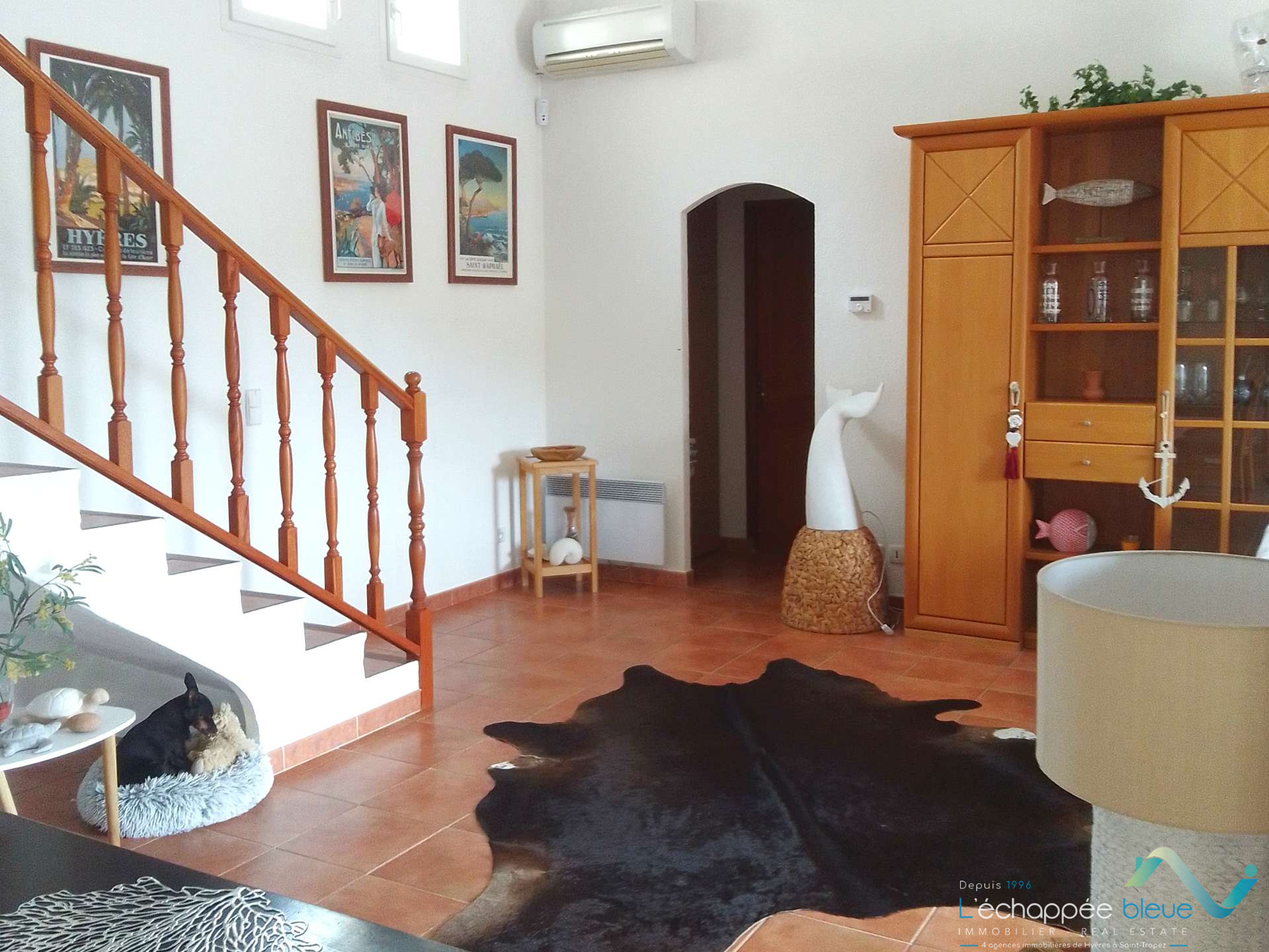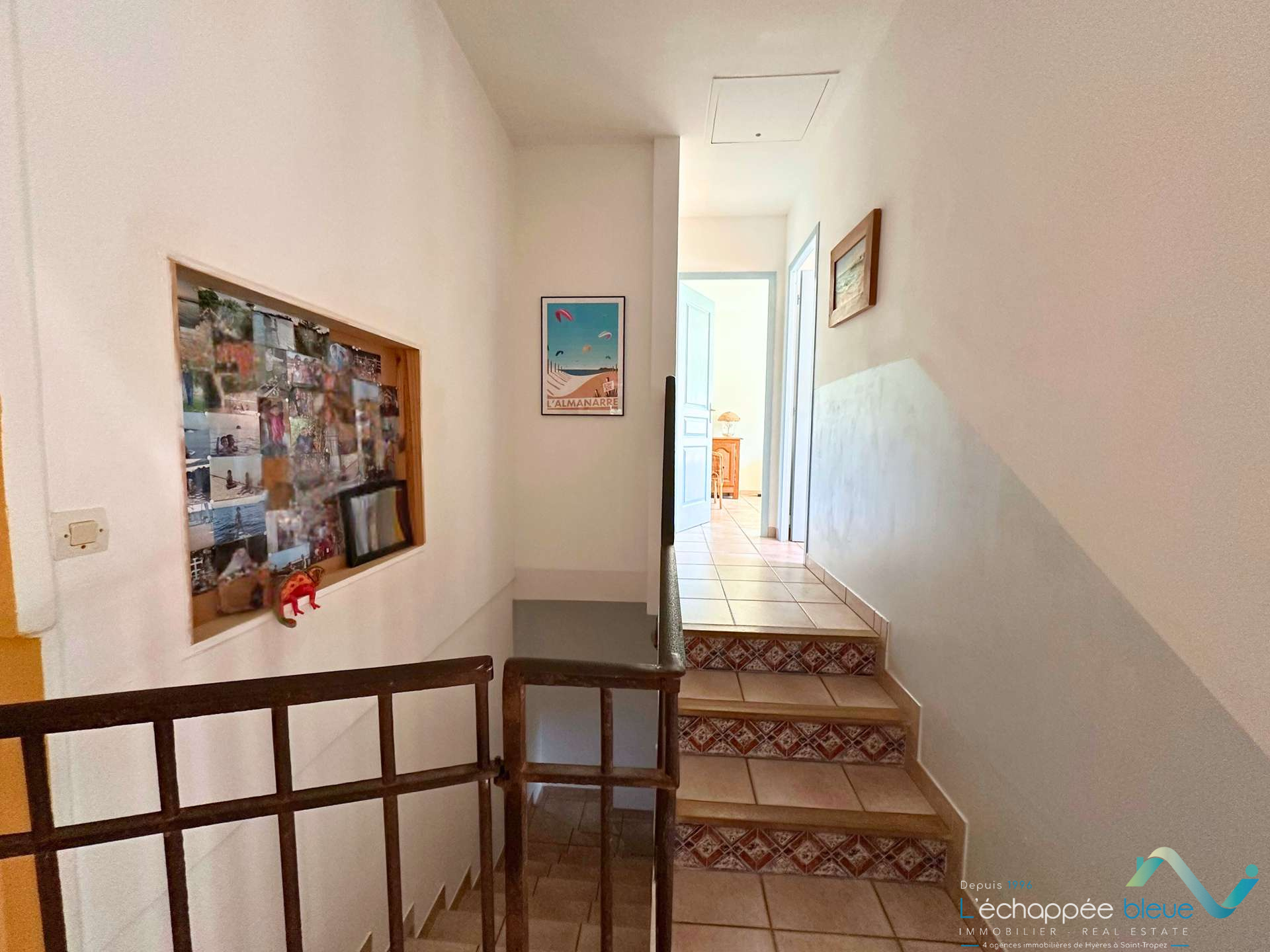 Au sein d'un domaine sécurisé, cette villa très spacieuse jouit d'une position dominante offrant une vue dégagée sur les vignobles, la baie de Hyères, les Îles d'Or et les collines environnantes. Calme et confort à quelques minutes des magnifiques plages de sable fin de l'Argentière, l'Estagnol, Brégançon et Pellegrin et de l'embarcadère pour...