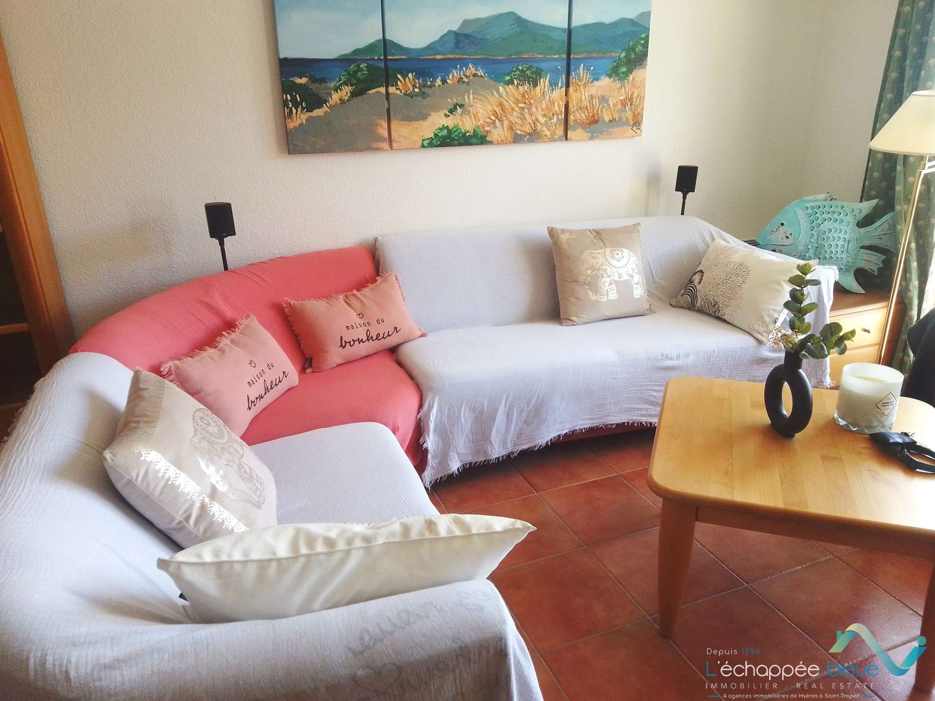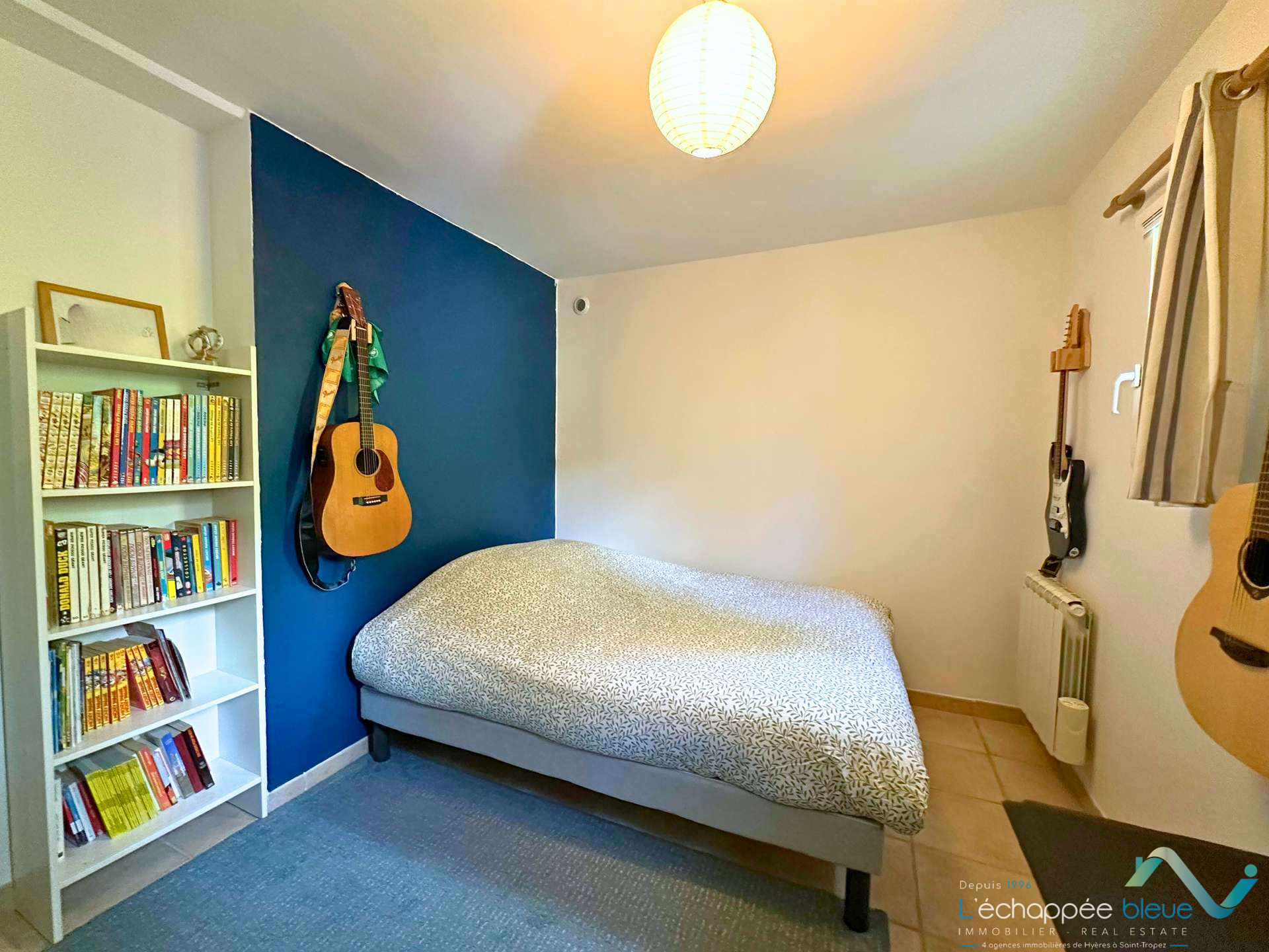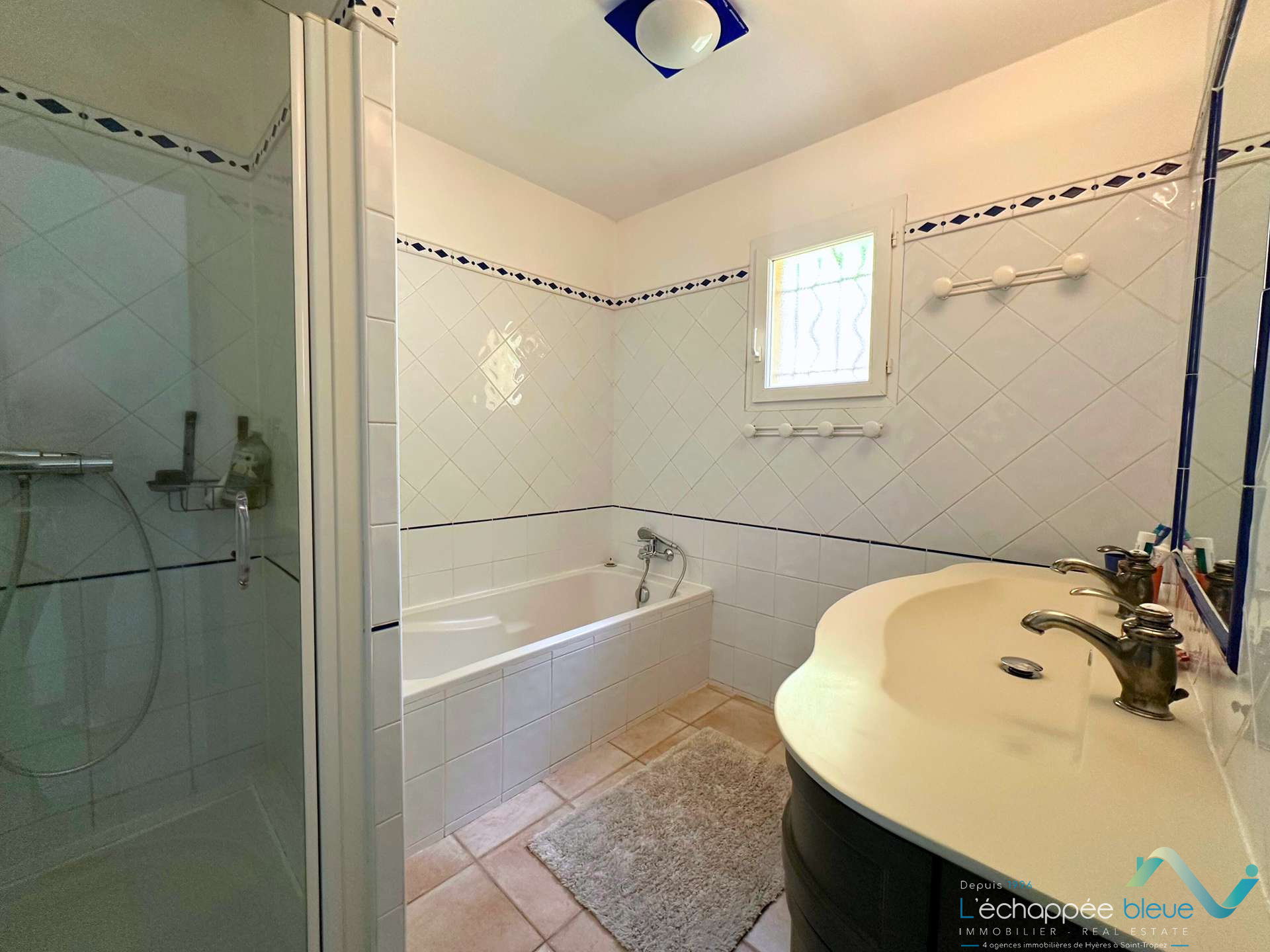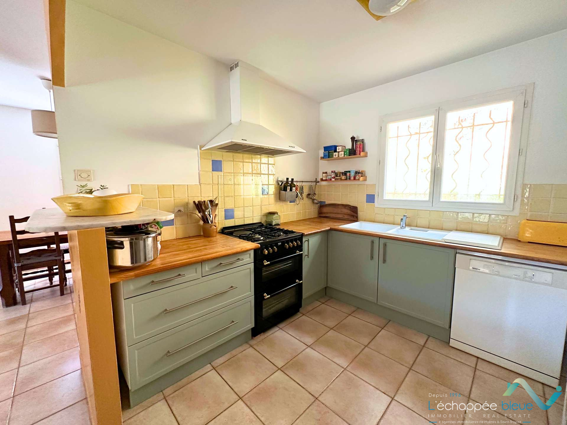 Au sein d'un domaine sécurisé, cette villa très spacieuse jouit d'une position dominante offrant une vue dégagée sur les vignobles, la baie de Hyères, les Îles d'Or et les collines environnantes. Calme et confort à quelques minutes des magnifiques plages de sable fin de l'Argentière, l'Estagnol, Brégançon et Pellegrin et de l'embarcadère pour...