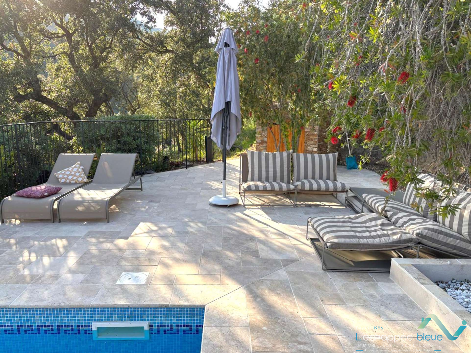 Au sein d'un domaine privé sécurisé, dans un écrin de verdure qui lui garantit calme et intimité cette jolie maison a tout ce qu'il faut pour passer un séjour agréable entre plage et campagne : une terrasse couverte pour déjeuner face aux collines, un terrain de pétanque pour profiter entre amis ou en famille et une belle piscine pour se...