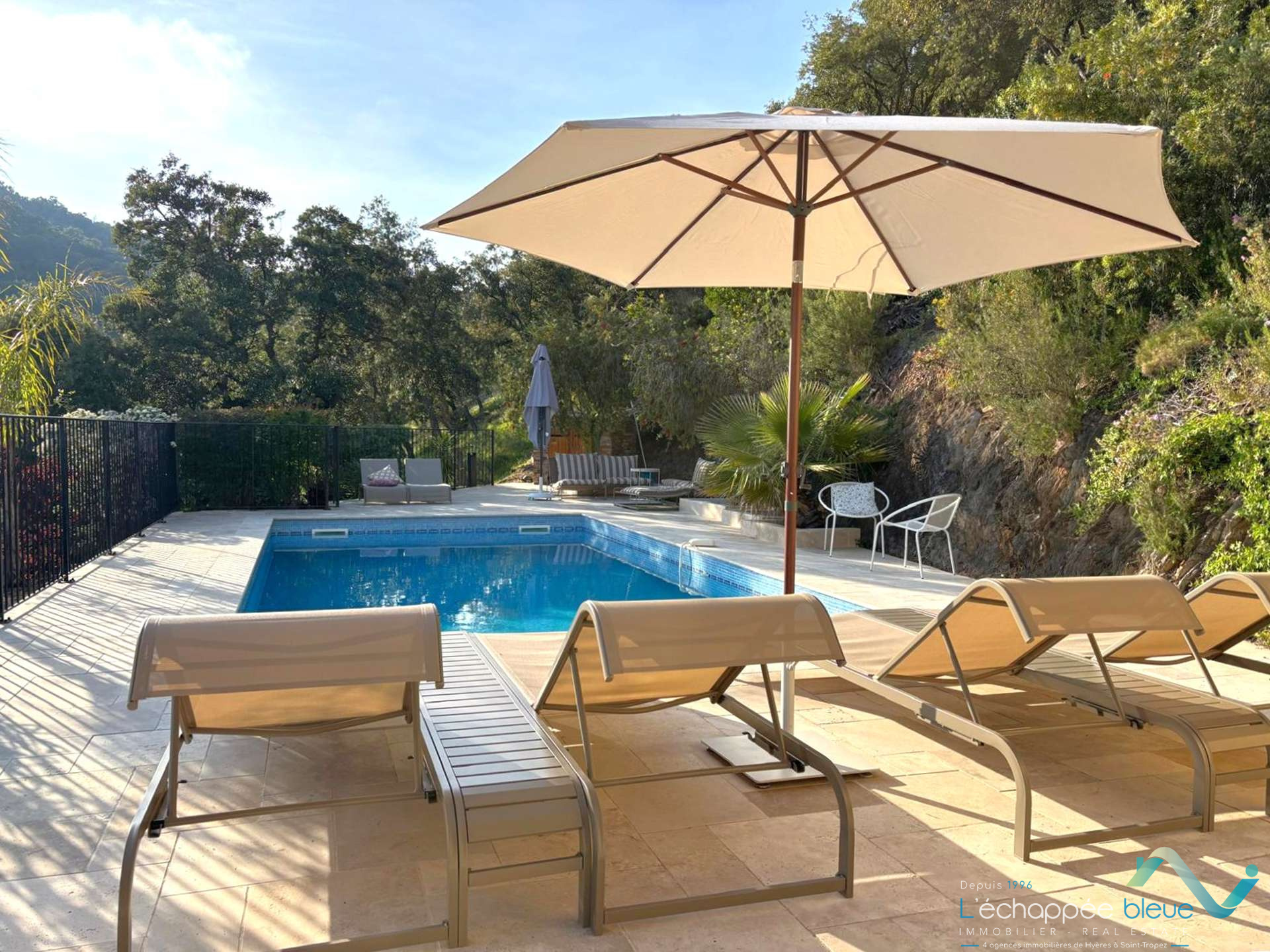 Une vue majestueuse sur la mer, face à l'Île de Porquerolles mais aussi les forêts des Maures et les greens du Golf, c'est ce à quoi il faut vous attendre en occupant cette belle villa de style néo-provençal. Située dans un domaine privé et sécurisé lui garantissant le calme, c'est un havre de paix à proximité des superbes plages de sable fin...