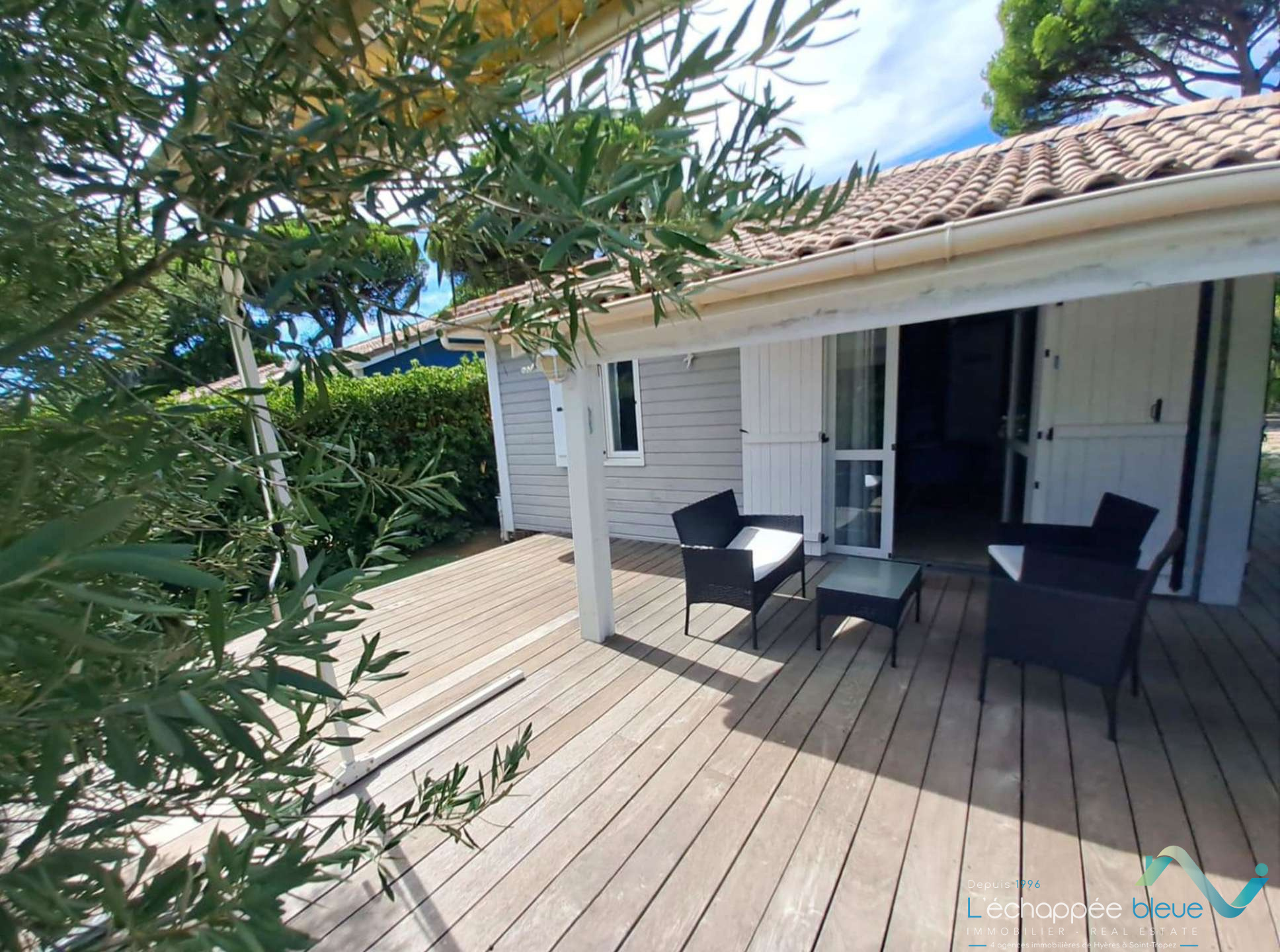 A 5 km de Saint-Tropez, cette résidence avec piscine collective, abrite un ensemble de chalets intégrées dans un site arboré de pins sur 15ha. Idéalement située à 2 km des plages, à 1 km des commerces et à 5 km de Saint-Tropez, vous pourrez visiter facilement les villages alentours (Port Grimaud, Gassin, Ramatuelle). La maison climatisée...
