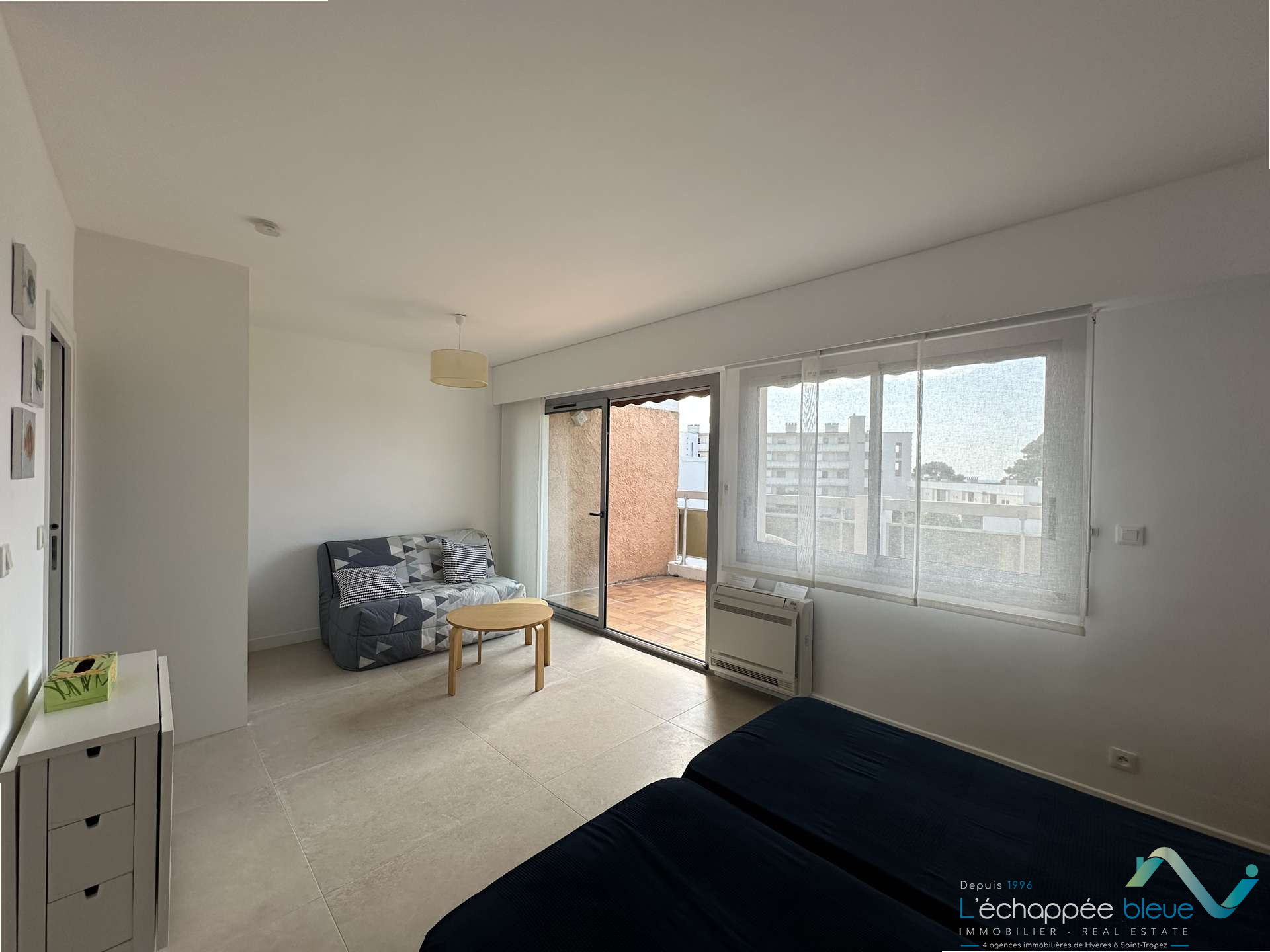 Joli et spacieux studio d'environ 30m² avec terrasse et parking dans la résidence. Situé au 2ème étage. SALLE D'EAU avec WC. SÉJOUR: baie vitrée ouvrant sur la terrasse, canapé convertible + 2 lits simples, coin repas. CUISINE semie-ouverte. Parking libre dans la résidence et accès piéton pour aller à la plage de sable. HEBERGEMENT:...